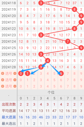 咱们再根据最近30期的走势和我们的分组对比遗漏数据