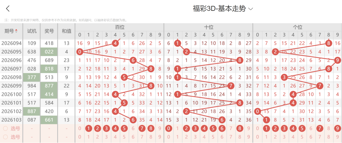 带着粉丝发大财福彩3D第26104期选号条件分析