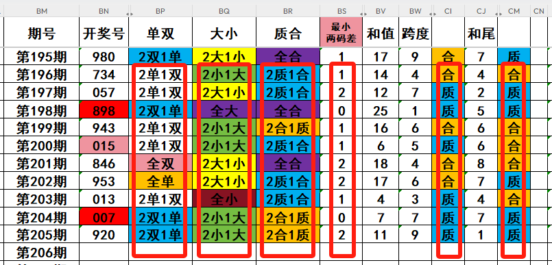 3,最近10天当中,两质一合开出5次,两合一质开出3次,全质数开出0次,全合数开出2次。当前开奖号全质数号码遗漏20期,近期需重点关注开奖号全质数号码的回补!