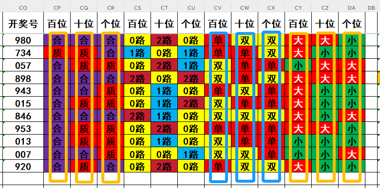 1,目前开奖号百位号码球11天当中,质数(12357)开出了1次,合数(04689)开出了10次,本期重点关注开奖号百位号码球质数的回补!