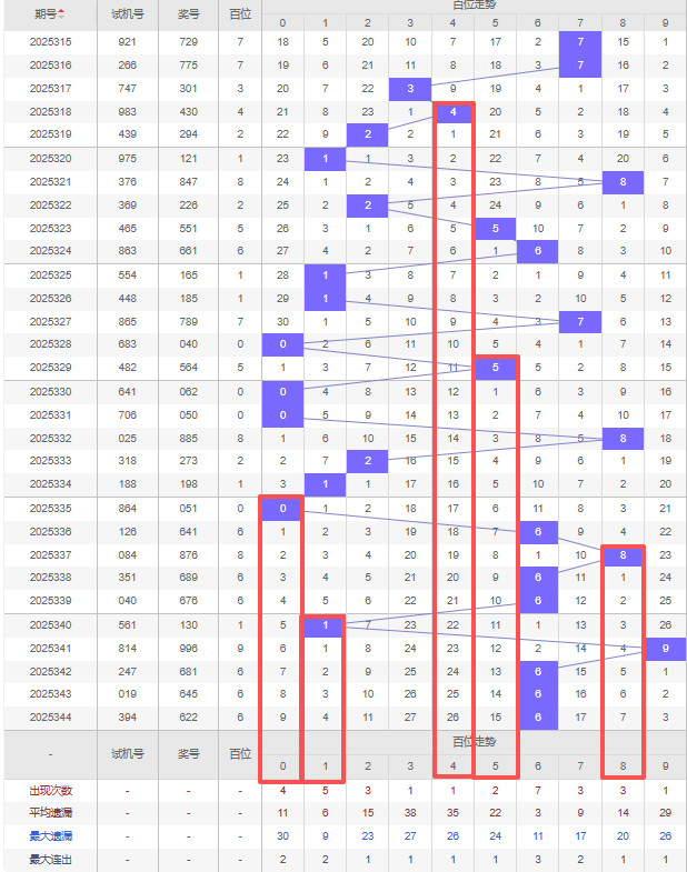 2025345期五码定位(百位、十位、个位):