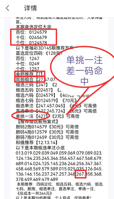 145期:金胆双胆全部命中,直选定位命中直选267,组选单注小底码命中267