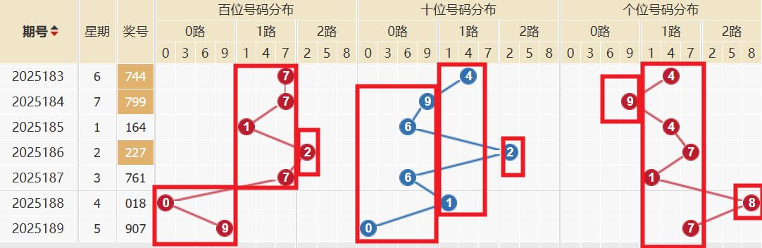 近七期百位012路比为2:4:1。冷温热形态依次为热→热→热→温→热→温→热。基于动态平衡干预以及概率补偿机制,本期百位重点关注0,2,3,5,6,8。近七期十位012路比为4:2:1。冷温热形态依次为热→热→温→温→温→热→温。基于动态平衡干预以及概率补偿机制,本期十位重点关注1,2,4,5,7,8。近七期个位012路比为1:5:1。冷温热形态依次为热→热→热→热→热→冷→热。基于动态平衡干预以及概率补偿机制,本期个位重点关注0,2,3,5,6,8。