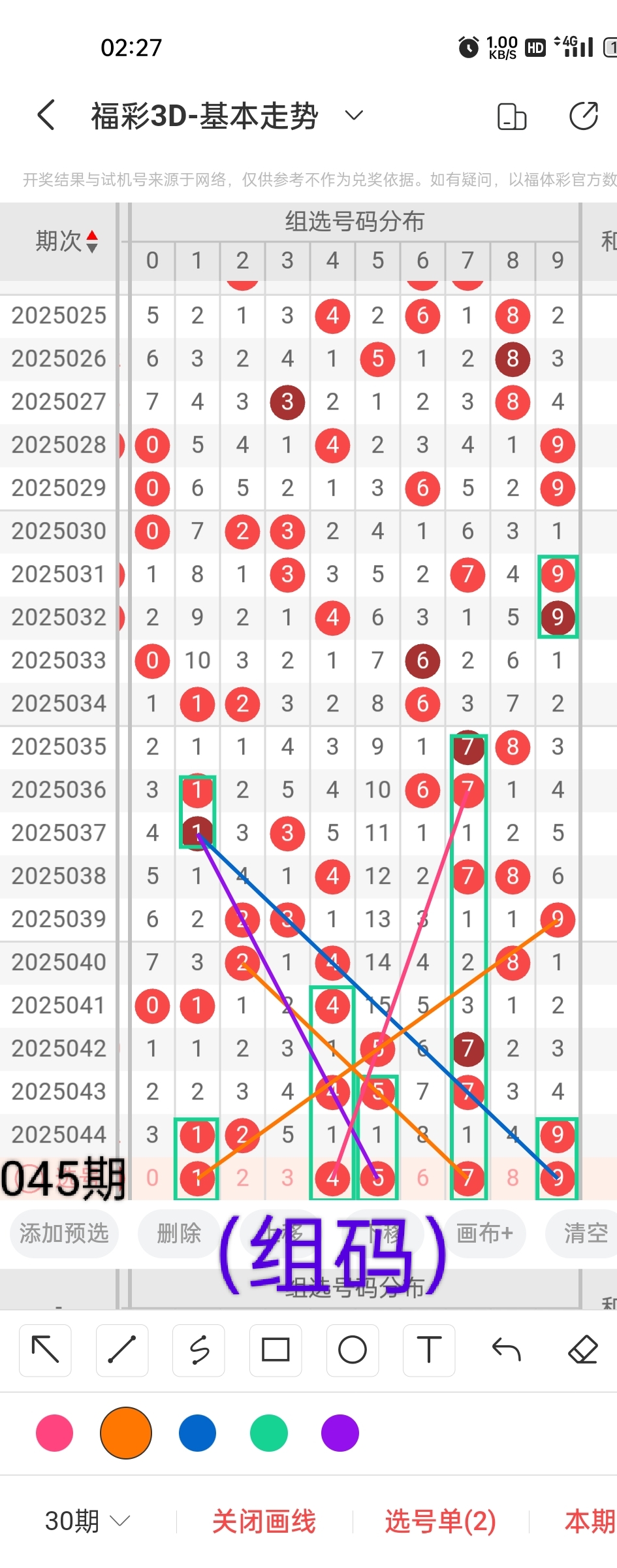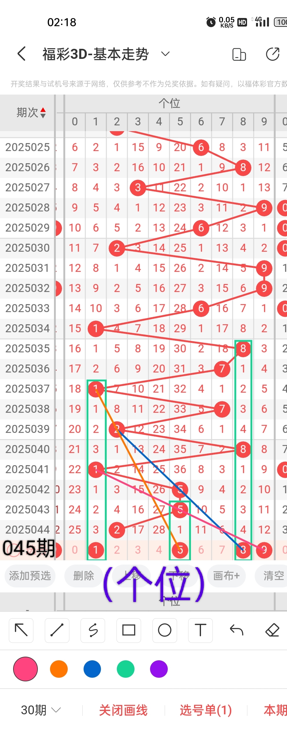 通过以上对上期的简单回顾,下面进入2025045期(下面简称本期)的选号分析: