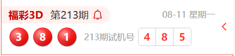福彩3D第213期开奖结果为:381