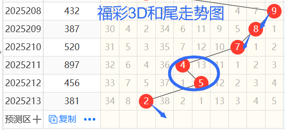 1)我们来看和尾,以209期——213期为例,如图