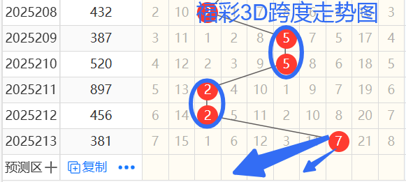 依次是55227跨度,按照路数转换关系来看,那么跨度我们暂定369258跨,本期个人比较看好3 6跨。