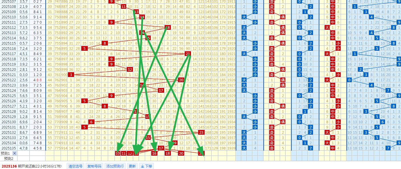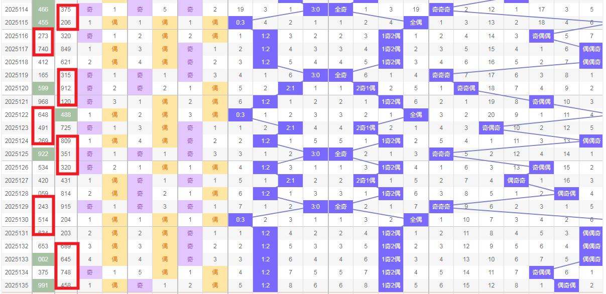 奇偶比例预判 在奇偶比例方面,第135期开出了偶奇偶的组合,显示出偶数号码的强势。然而,根据奇偶比例的自然平衡原理,偶数号码在第136期有望得到更多的关注。因此,136期的奇偶比例可能为2:1,即偶数号码占据多数。这种预判基于对历史数据的深入分析,以及对奇偶比例波动规律的把握。奇偶比例为2:1,大小比例为1:2的号码,如:2(小偶)、9(大奇)、3(小奇)。