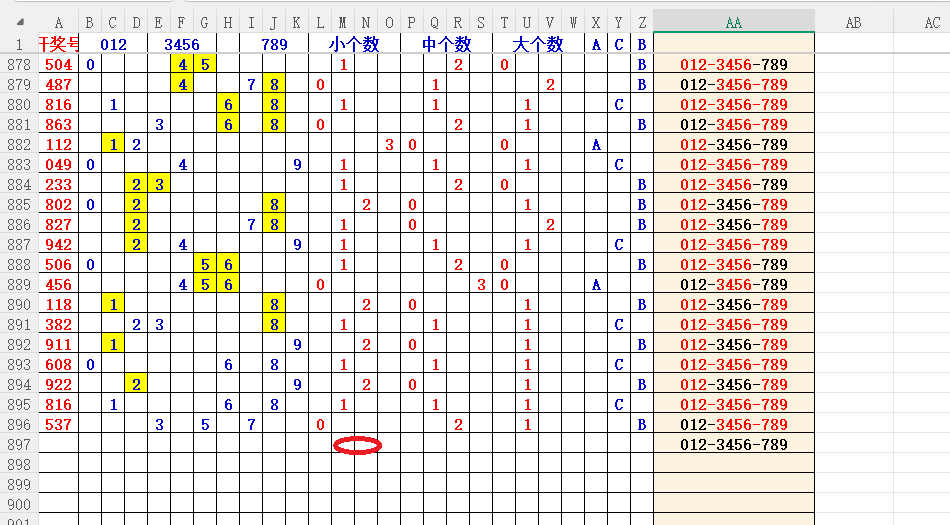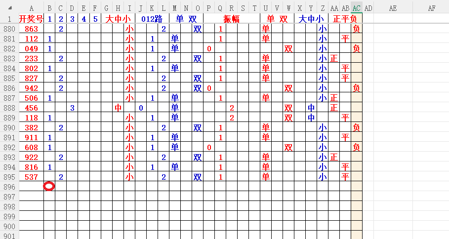 如上图56,大中小分析,中号3456出胆码,最低1个胆码,重点34