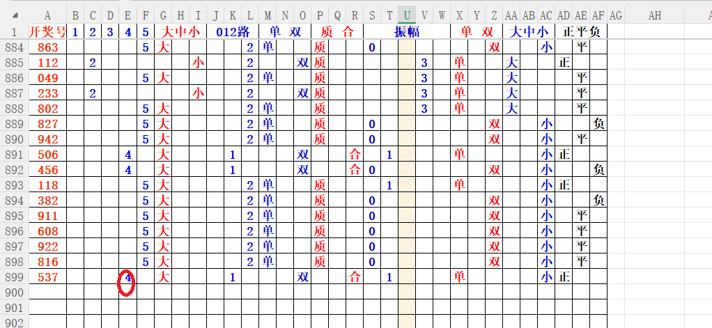 如上图2,大中小分析来看,中大数尾3456尾