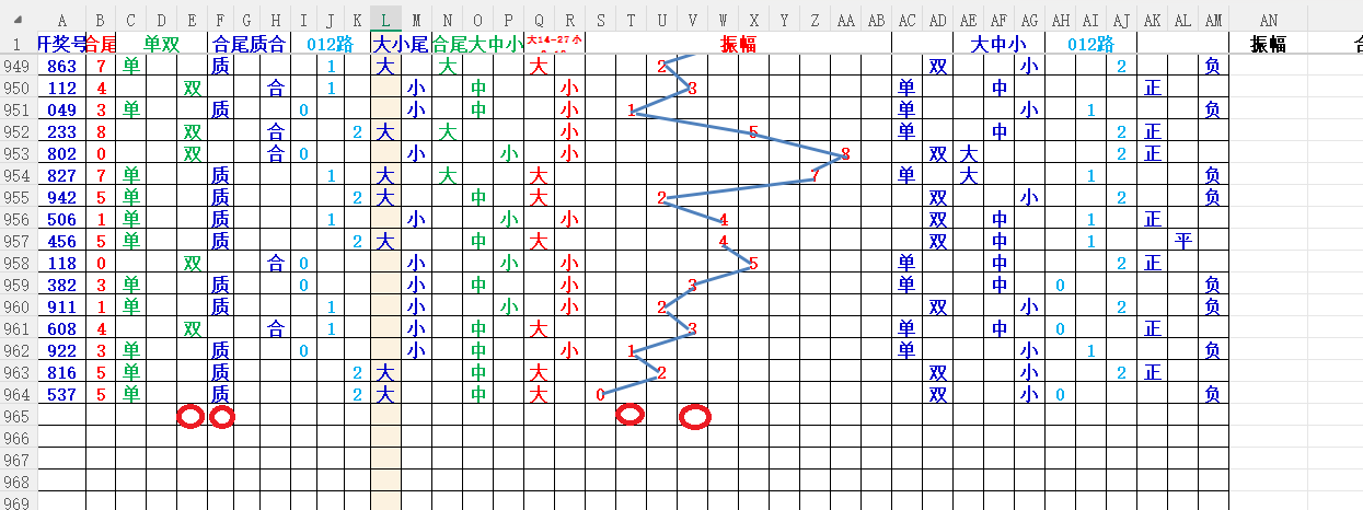 如上图56,012路分析。0369路号出胆,039中出,重点39胆码