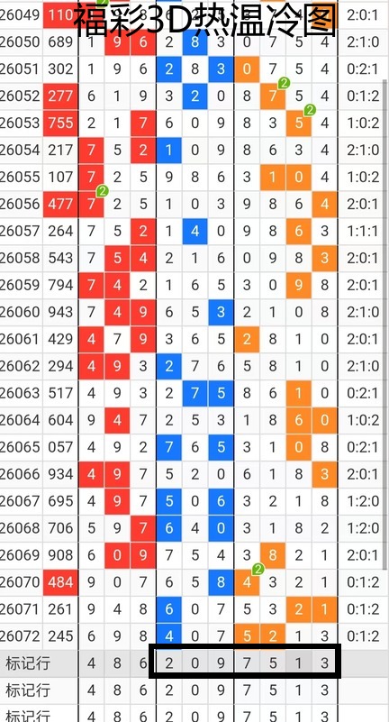 那么下面我们分析一下冷热图这个位置如果热号一旦遗漏的话,它会一直往下遗漏到347的位置,上期我们都说过这个问题,所以说上期是对的,本期我还是考虑它应该还会在遗漏的一个范围,因为它最高值的话,可以遗漏到四期,所以说我还想再放它一期,因为468这3个号的话,我确实不考虑有还是考虑后7码啊,0123579,再说一下冷号,冷号7513,这个位置还是要考虑的,因为他这期本来就是遗漏了两期,然后现在回补了一期,然后又回补了两个,然后回补了一个21,然后回补了一个52,那么他刚走了四期,本期应该考虑冷号还会有。