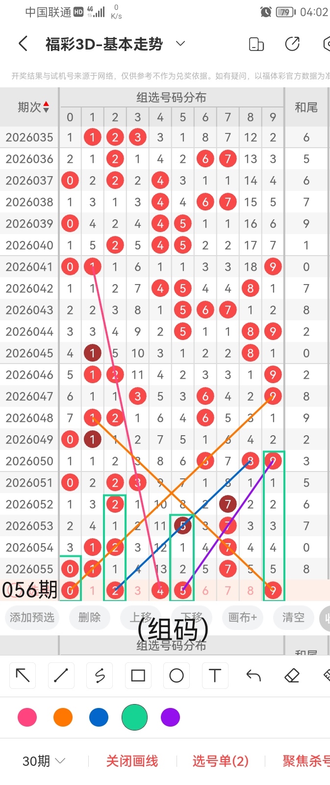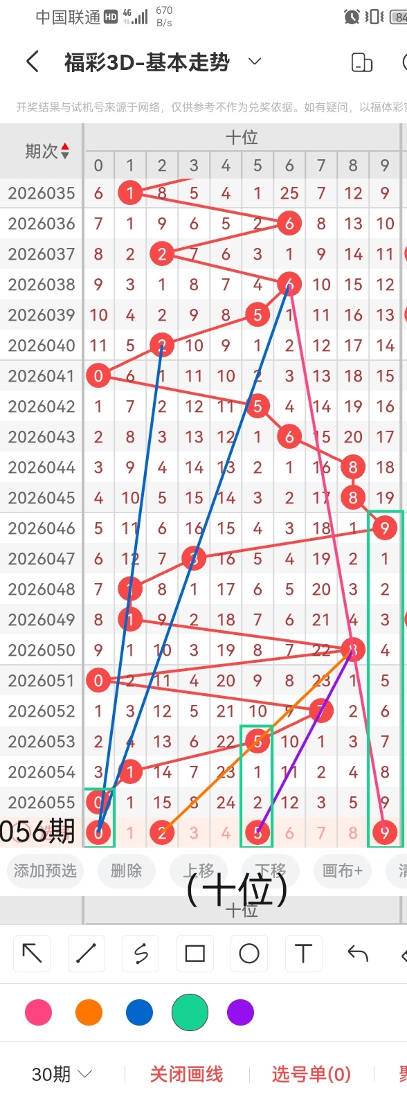 通过以上对上期的简单回顾,下面进入2026056期(下面简称本期)的选号分析: