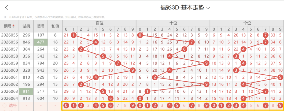 带着粉丝发大财福彩3D第26065期选号条件分析