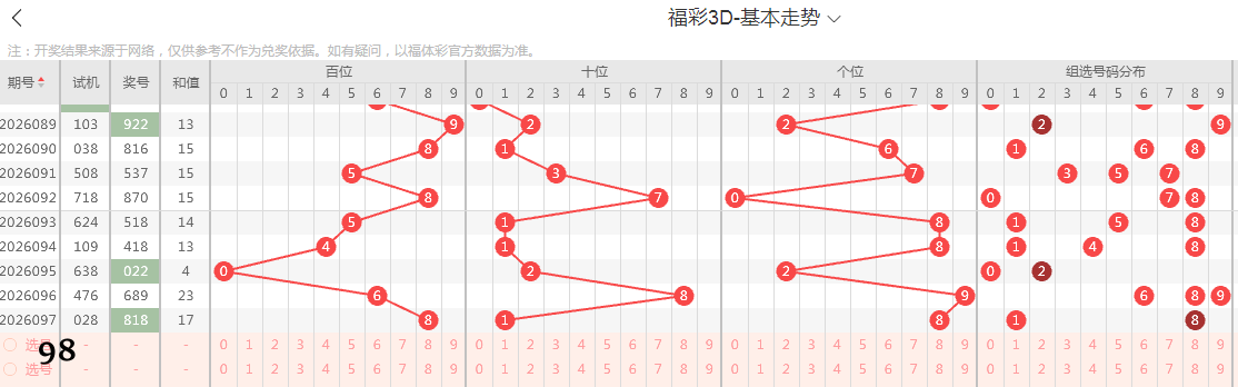 福彩3D第98期直选分析