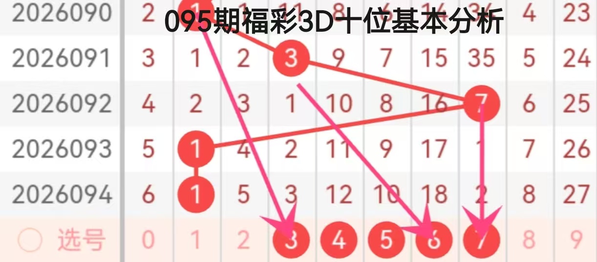 本次分析基于2026090-094期十位开奖数据,结合图中走势连线与箭头指向,综合研判095期十位号码趋势。