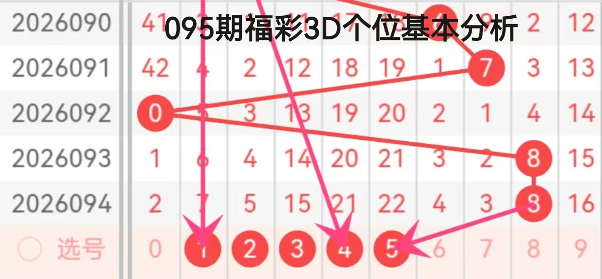 本次分析基于2026090-094期个位开奖数据,结合图中走势连线与箭头指向,综合研判095期个位号码趋势。