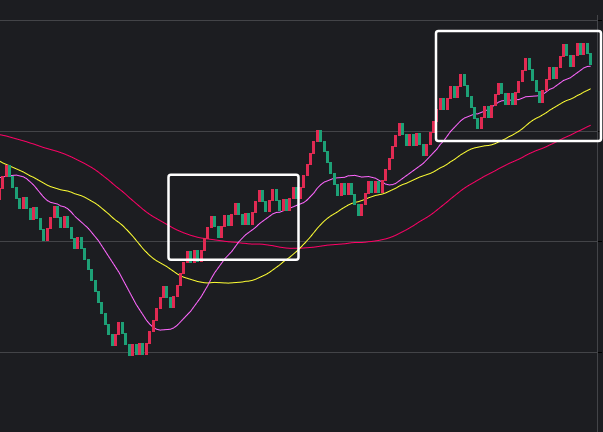 可以看到一些规律,在粉框中,如果一致,那么接下来这些跨度也会出。