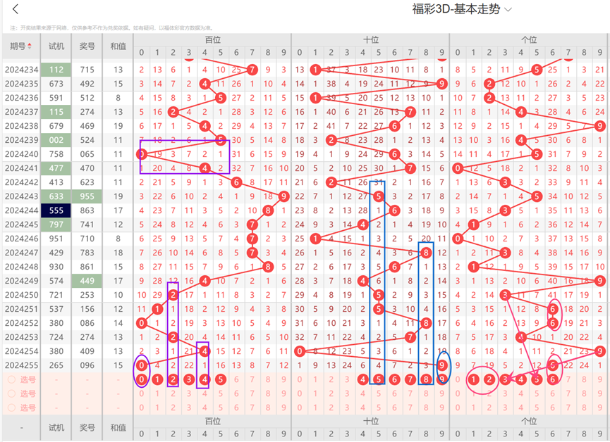 5、综上所述福彩3D-第256期定位推荐信息如下: