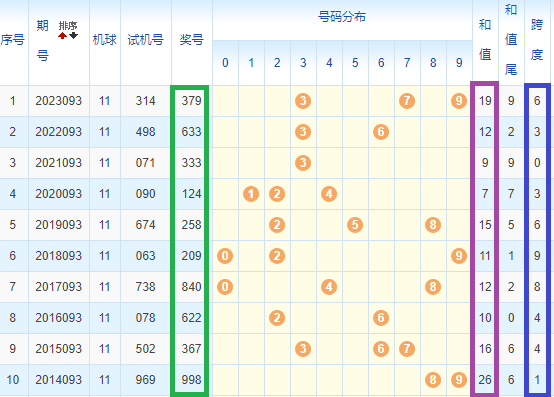 这10期跨度从下到上为1 4 4 8 9 6 3 0 3 6。看规律跨度436跨均出现2次以上,这期可以考虑436跨度。