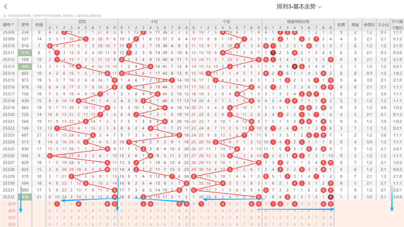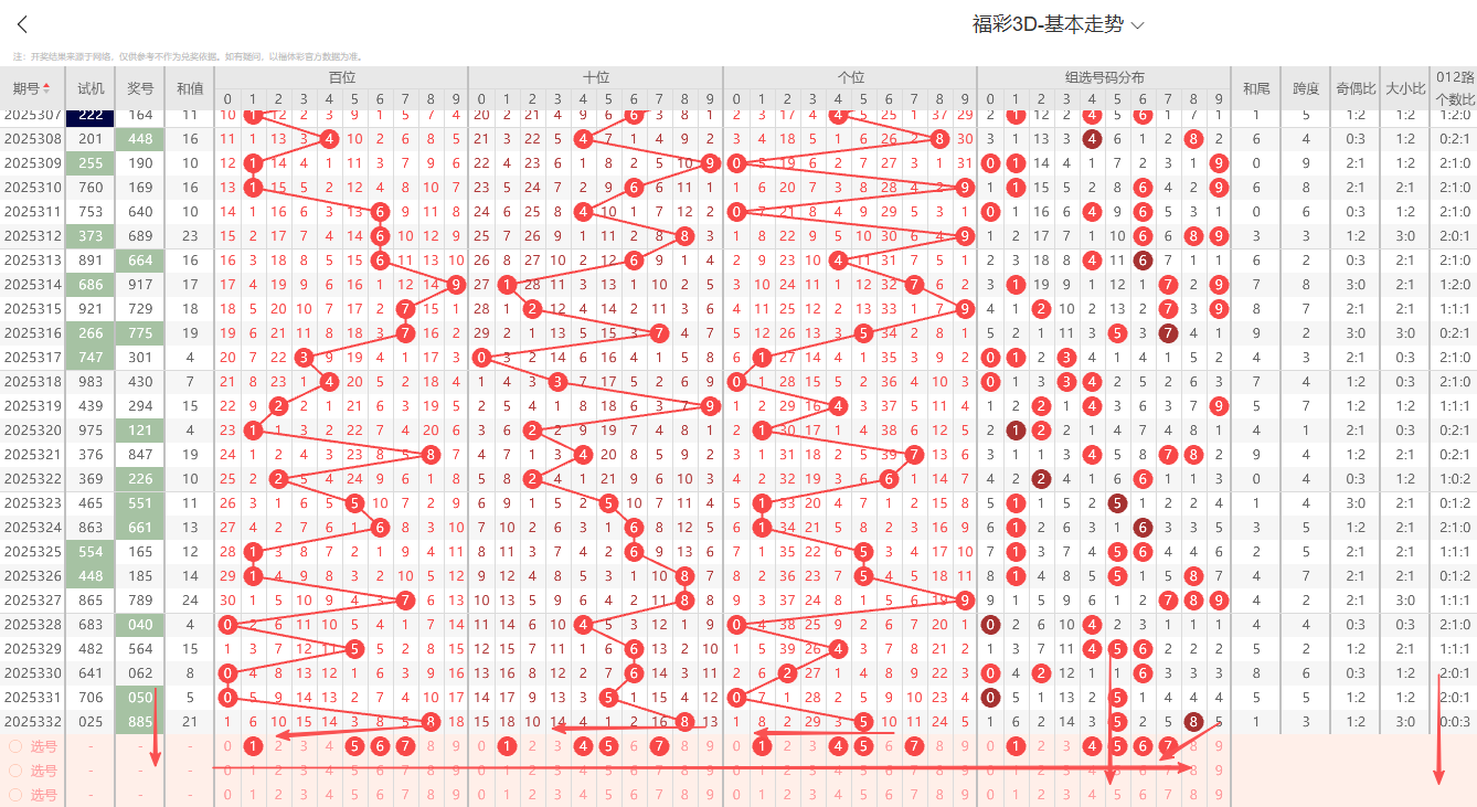 ②十位:上期开出小号奇数3号,已知奇偶周期均在1~3期变化为常态,上期出现奇偶互变开出奇数0路号码,根据012路以及奇偶周期变化的特征规律本期0路号码有继续开出的趋势防2路,依据大小周期波动频率本期可以关注大号区域出号。