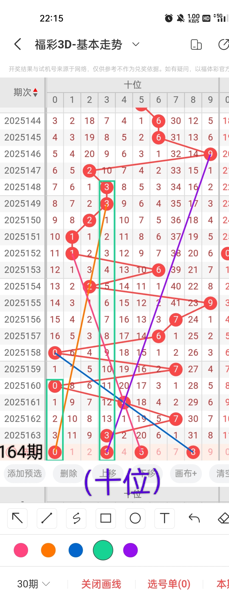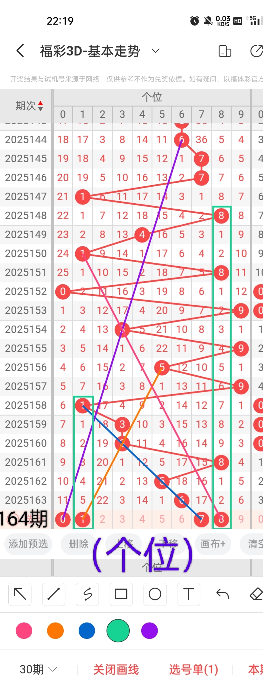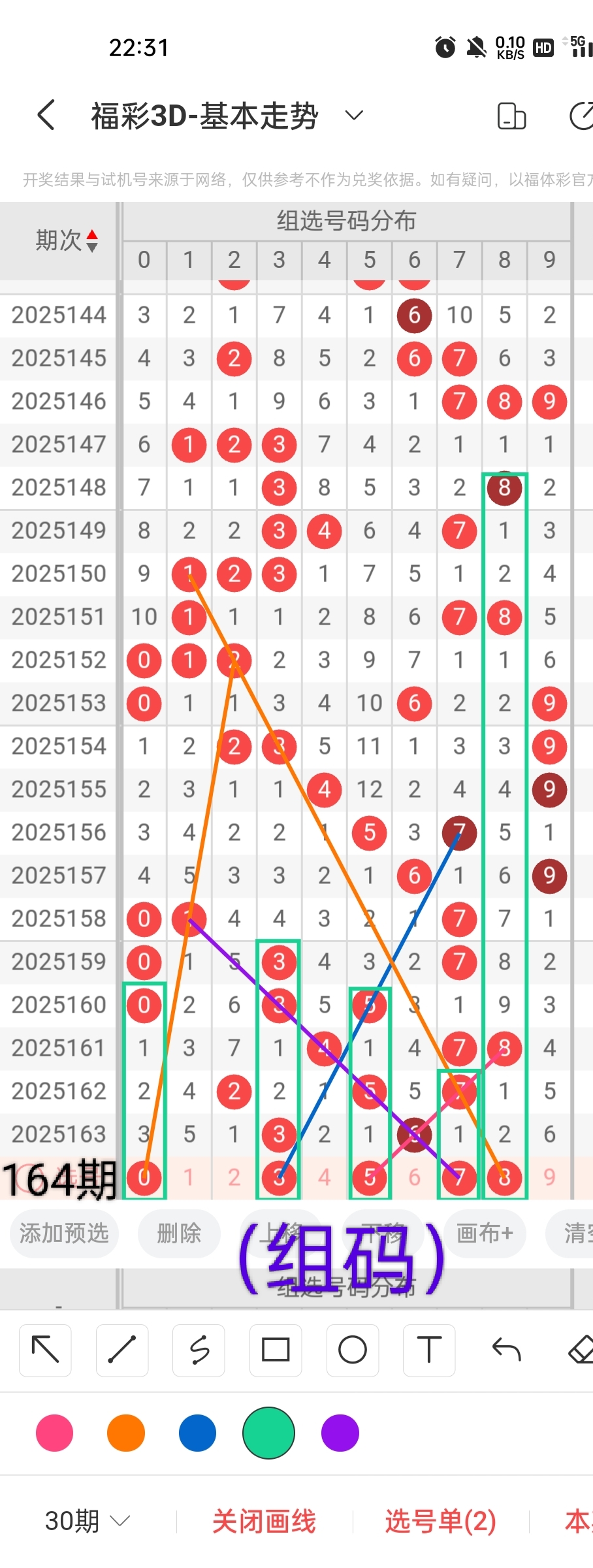 通过以上对上期的简单回顾,下面进入2025164期(下面简称本期)的选号分析: