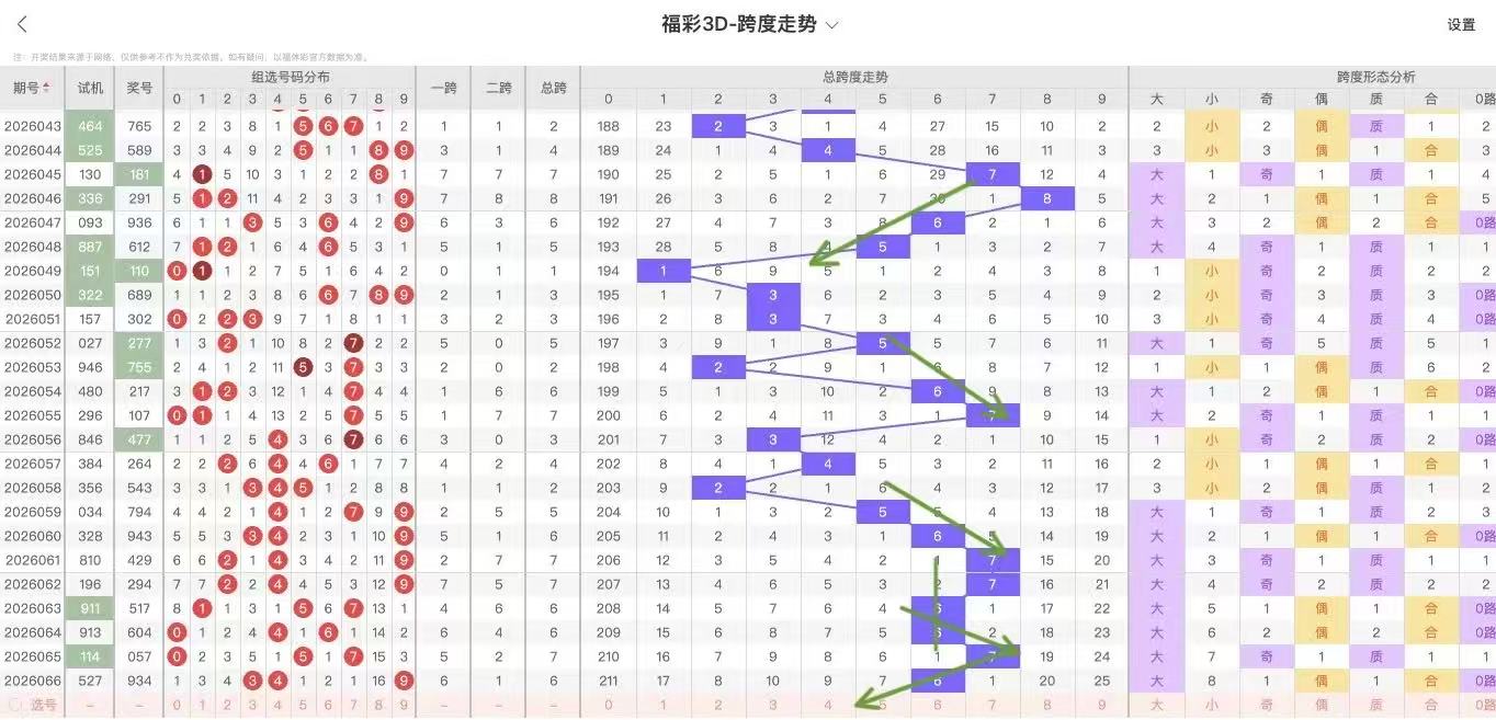2026067期福彩3D跨度走势图如下: