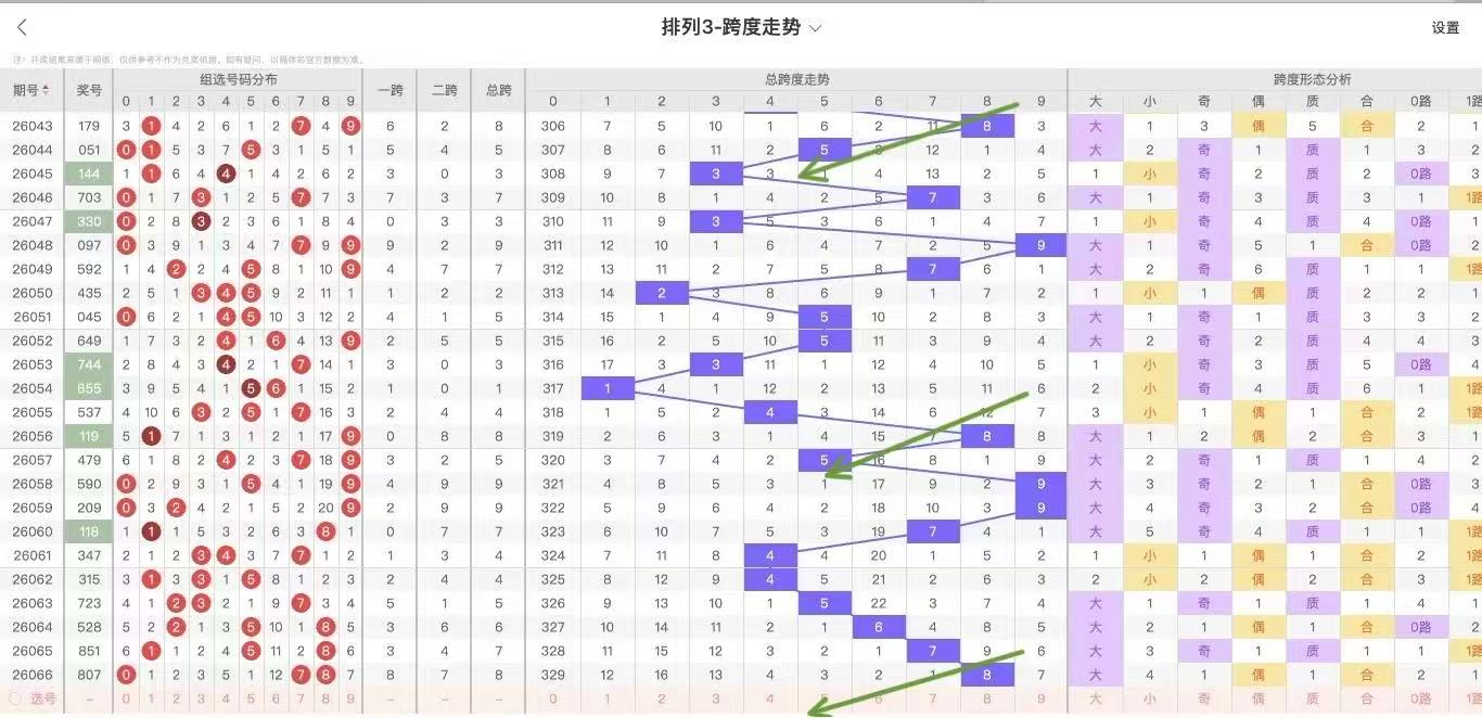 根据走势对跨度观察统计得到以下分析结果: