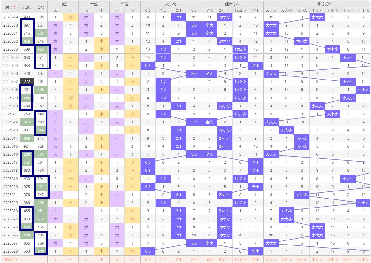 329期/福彩3D综合分析 :大小走势.奇偶比列及跨度分析等组号分析