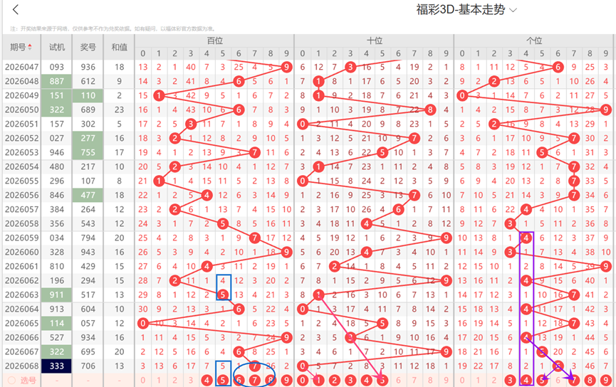 福彩3D-第069期定位分析如下: