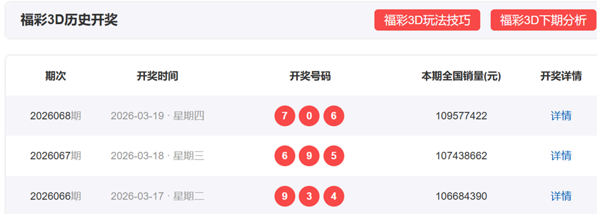 福彩3D上一期,开奖号码706,形态为组六,奇偶比为1:2,012路数值表现为100,和值13,和尾3,跨度7。