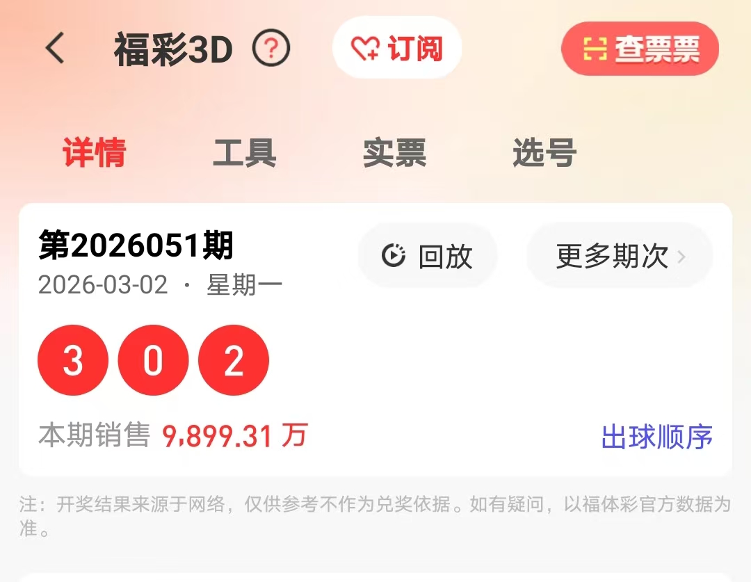上期复盘:上期开奖号302,组六形态,和值5,跨度3,1个奇数2个偶数,上期试机号157。(统计试机号这个数据是因为咱们有些小技巧可以从试机号里面选取出胆码的,在一定的概率上是能提高中奖率的。)