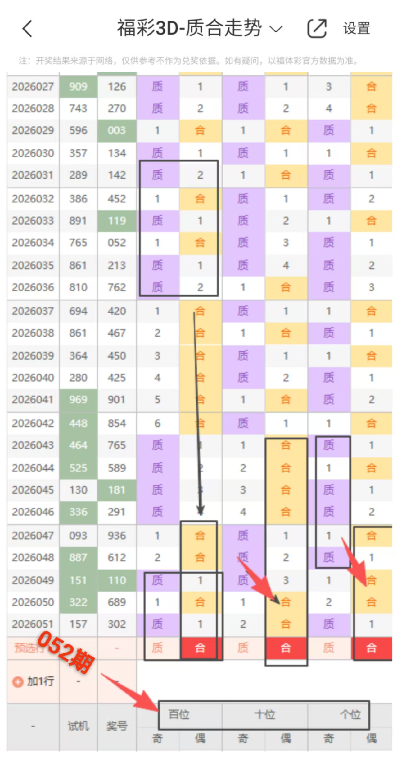 本期百位 十位 个位质合走势图分析: