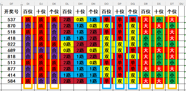 2,目前开奖号十位号码球11天当中,质数(12357)开出了9次,合数(04689)开出了2次,本期重点关注开奖号十位号码球合数的回补!