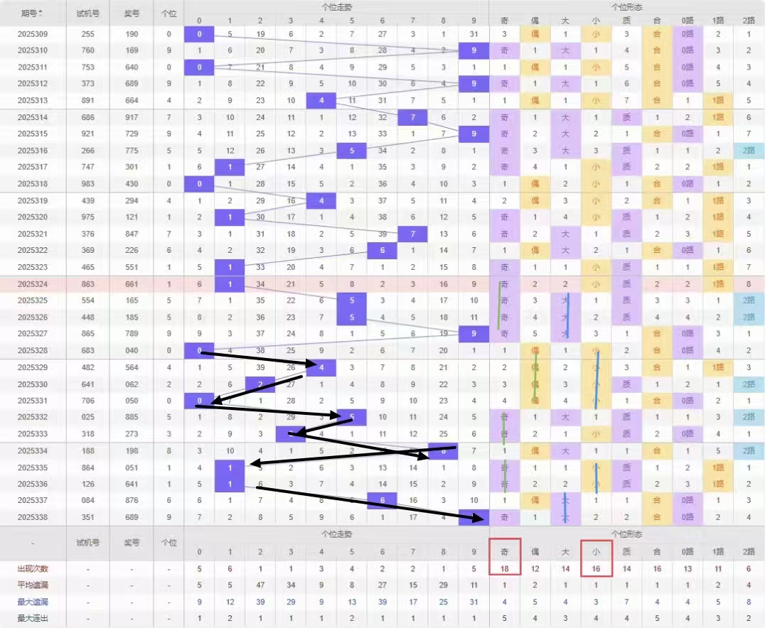 福彩3D第2025339个位先分析奇数偶数,近15期开出奇数号9期开出偶数号6期,开出奇数号的概率稍大于开出偶数号的概率,上期开出奇数号那么本期继续开出奇数号的概率较大建议选择遗漏期数较多的奇数号开出。杀号定在所有偶数号。