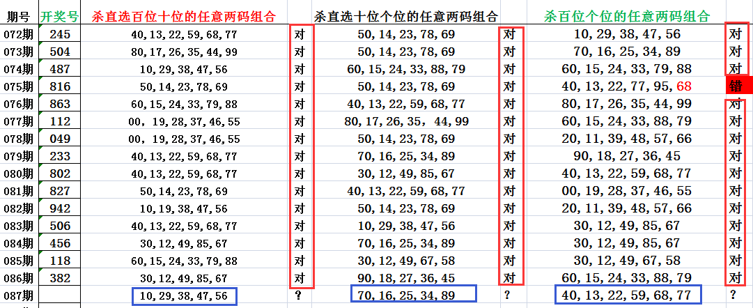 杀直选定位两码组合,连续好多天正确