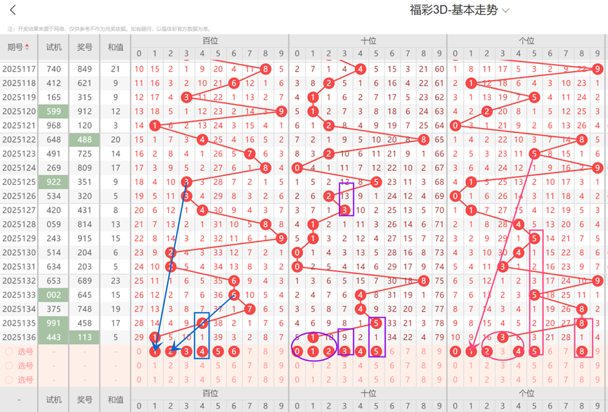 5、综上所述福彩3D-第25137期定位推荐信息如下: