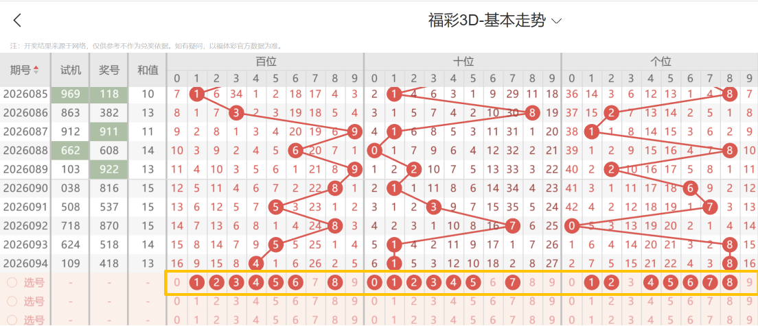 带着粉丝发大财福彩3D第26095期选号条件分析