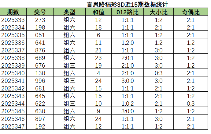 上期出的是组,和值是12,跨度9012路比111,奇偶比21大小比12