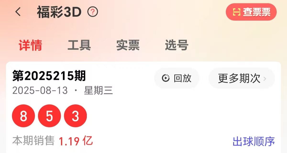 215期开奖号为853,形态组六,质合比2:1,和值16,跨度5,012路比为1:0:2,大小比2:1,奇偶比2:1