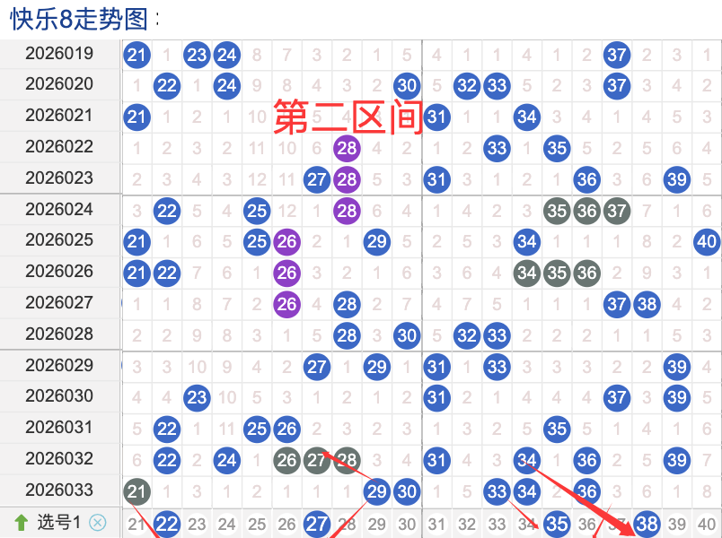 ·上期二区开出6个奖号(21.29.30.33.34.36)上期回顾二区开出6个奖号二区间在上期落位同比前期的话呈现了一个递增的落位趋势,先来看本期号码22整体活跃度较,在近 30 期里有一定的间歇性出现,不是每期都开,近期整体走势还是很稳定。号码27近期热度较,间隔性也是很好,说明其在当前阶段活跃度较注意防守。号码35近期活跃度较热有一定的间歇性近期整体走势相对还是平稳有特别明显的冷热趋势变化,号码3830期内活跃度较一般有明显的连续出现形态走势,整体表现比较一般