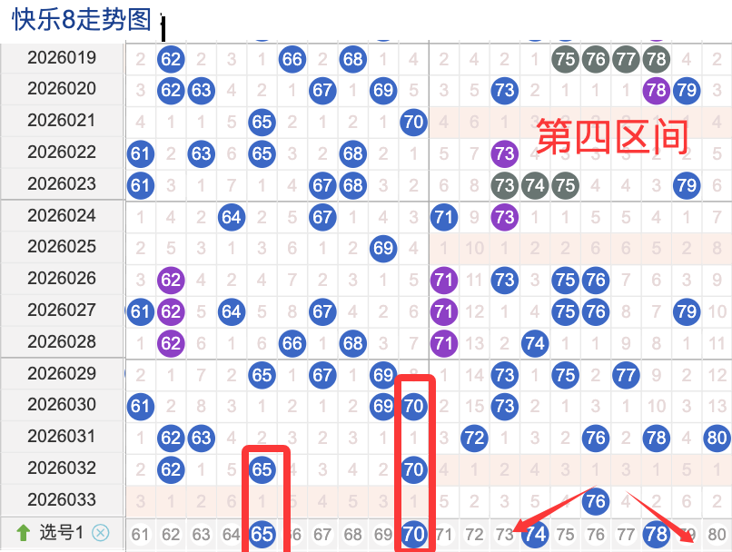 上期四区间开出了1个奖号(76)上期的四区开3个奖号呈现了一个递减的趋势,开出的奖号7头回补1个6头断号,先来看号码65在近 30 期内属于还是很稳定的号码,近期出现频率相对稳定的,偶尔会间隔多期后出现一次,这个号码要注意防守,号码70具有一定的间歇性活跃度较稳定比如有时会间隔 35期就再次出现,也有时会间隔多期,近期整体出现频率比较,近期还是要关注的.号码74活跃度近期比较,有一定的间歇性。活跃度近期较热,整体走势有一定的波动性.