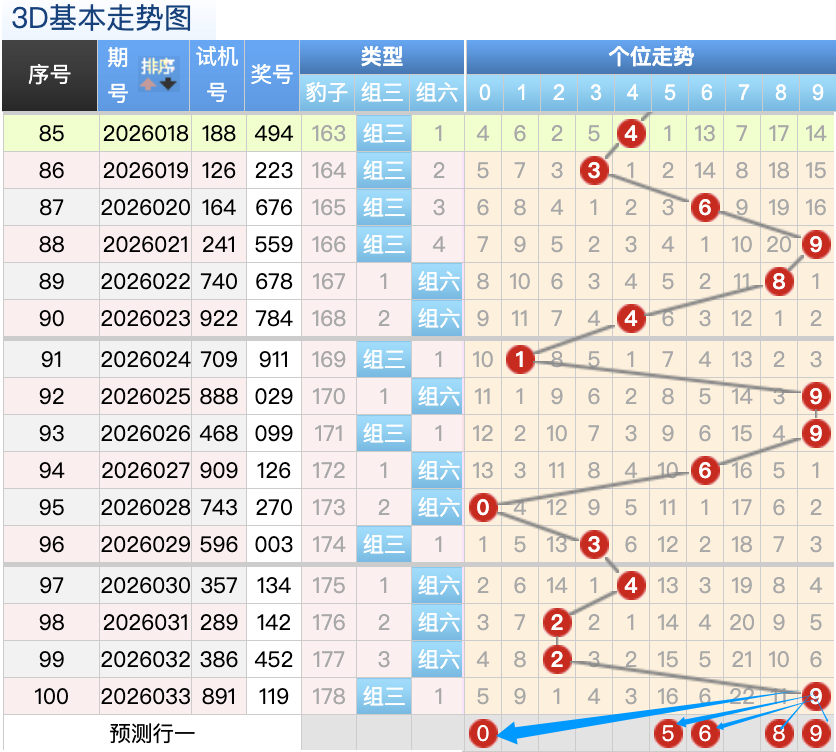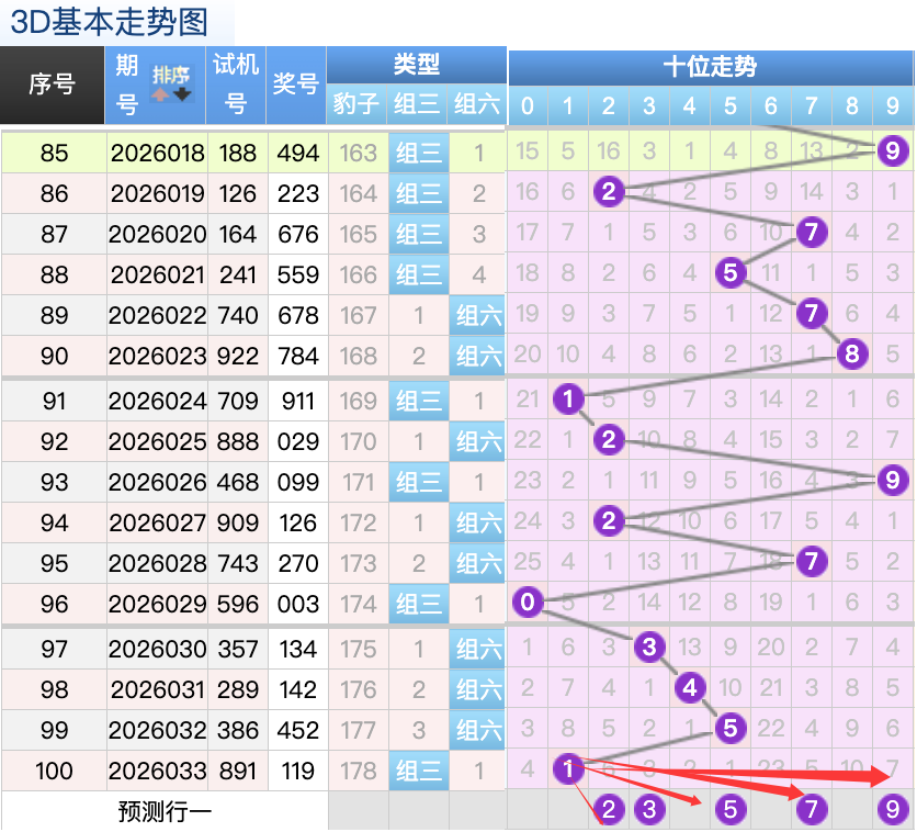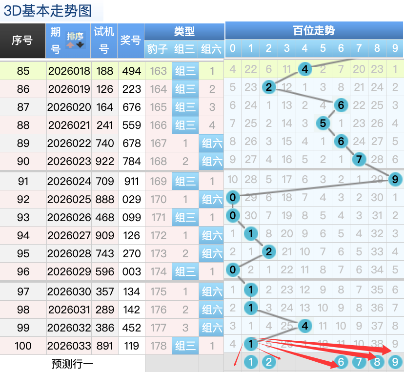3D上期百位开出的1球,这个奖号是一个热码回补落位趋势也是一个比较好的符合百位上的落位点,先来看2号球这里还是有机会继续走出一个顺位小周期回补趋势,还有一个就是号球和0号球这里的两个一重一分边号码的落位形态的概率在这里的机会还是很好的要注意防守,然后4号球这里要注意是一个折返回补落位趋势注意防守8号球在百位上要注意可能有机会走最大冷码的落位注意防守 。