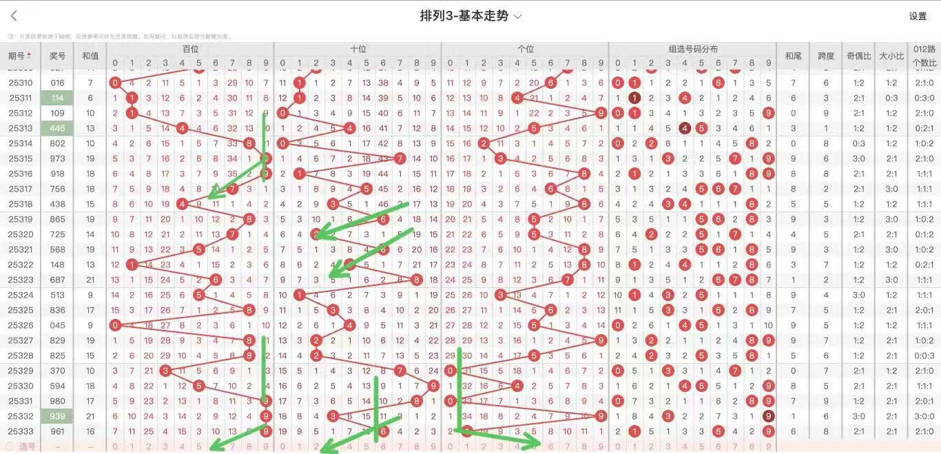 334期体彩P3基本走势图如下:15 4 14 根据和值12的下期钟摆走势来看升趋势稳定,近期和值喜在第2分区活动,和值形态规律:偶: 小和尾形态偶:小那么本期重点推荐值范围是:9-19主偶形态