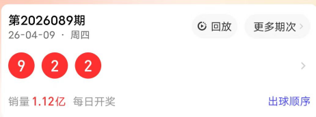 2026089期开奖号码为922,奇偶值为2偶1奇;大小值为1大2小;012路走势为022路;跨度为7跨;和值13点;组三形态。