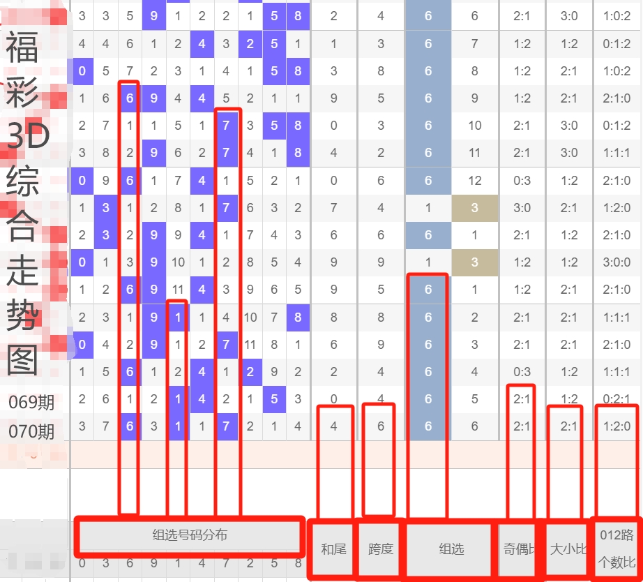 主要利用近15期开奖号码走势图为依据,按照奇数、偶数、和值、跨度、重码、邻码、隔期码 、012路等进行综合分析研判。