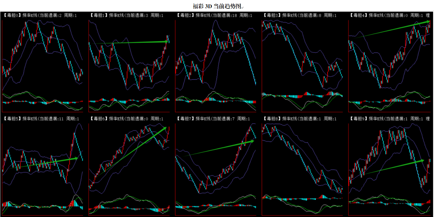 整体趋势上行,上边沿线趋势向上,下边沿趋势也是向上,节点震荡,当前连开5期,本期关注。