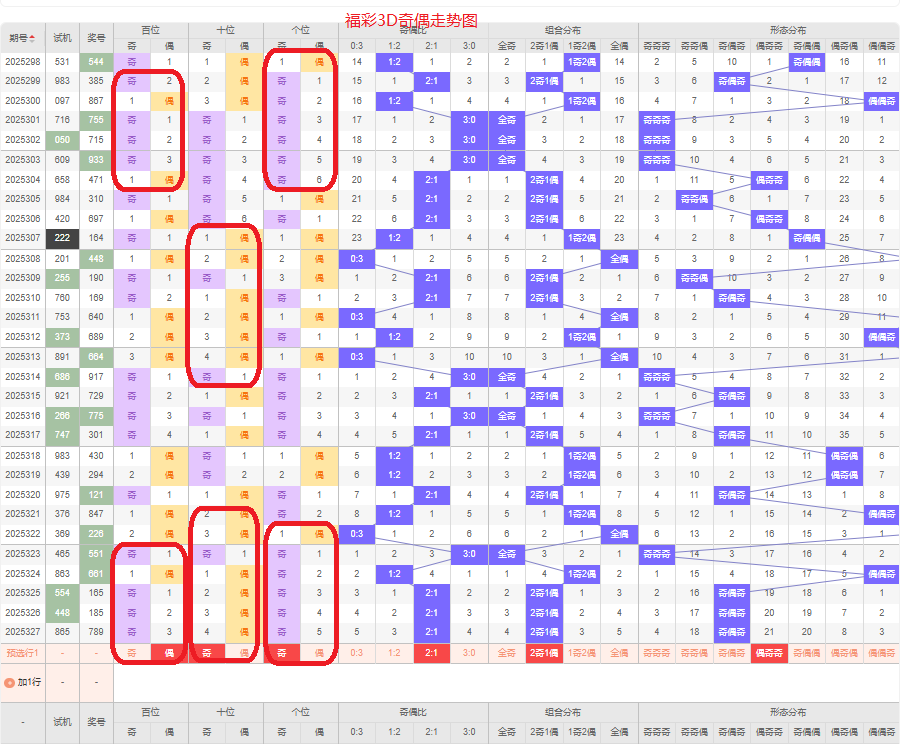 上期奇偶比是2:1,两奇的号码组合方式,从近五期的奇偶数出现情况看,奇数出现10次,偶数出现5次,奇数号码出现较多,本期侧重两奇的号码组合,侧重偶奇奇或偶奇偶的号码组合方式,根据奇偶形态做五码定位02468/13579/13579或02468/13579/02468