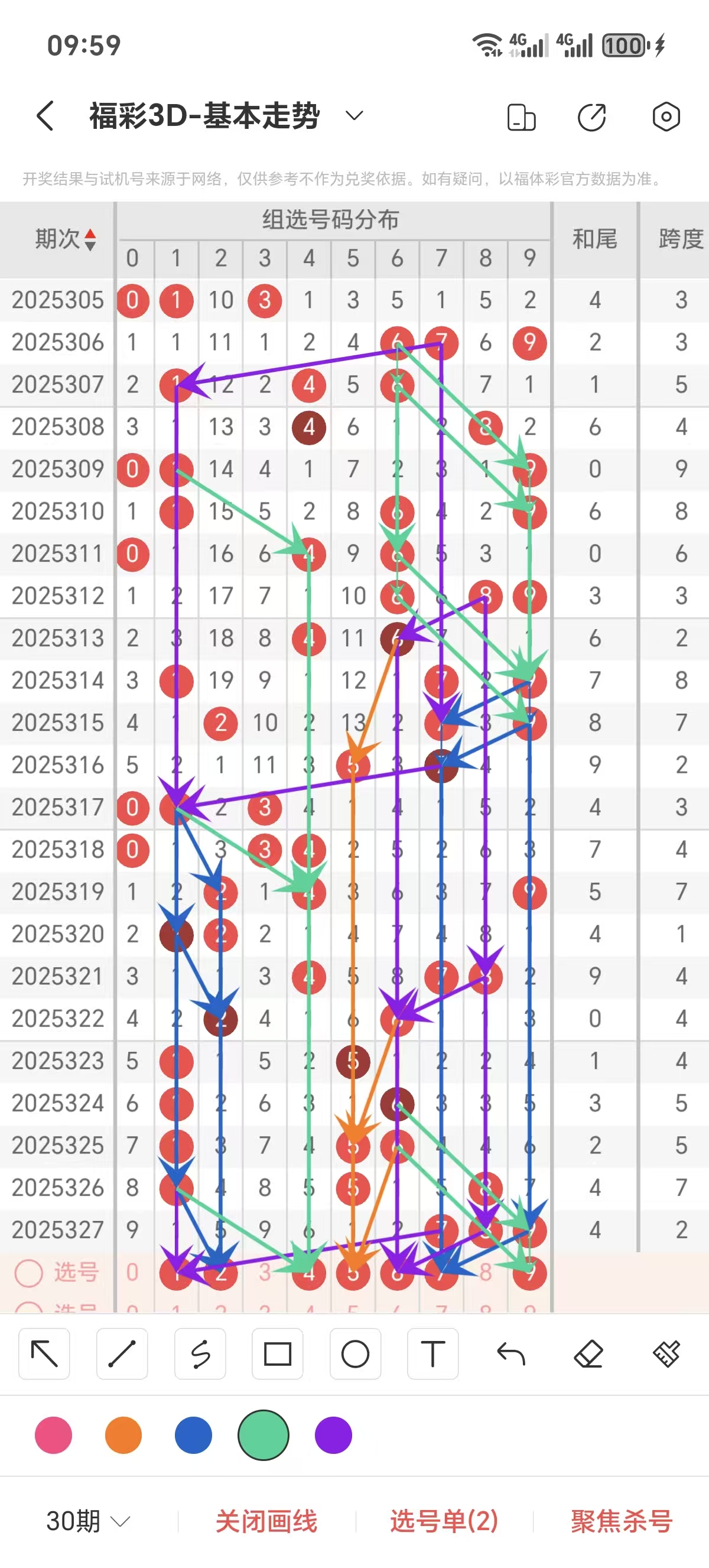 本期的选号可以选用两码差25的号码组合进行选号。