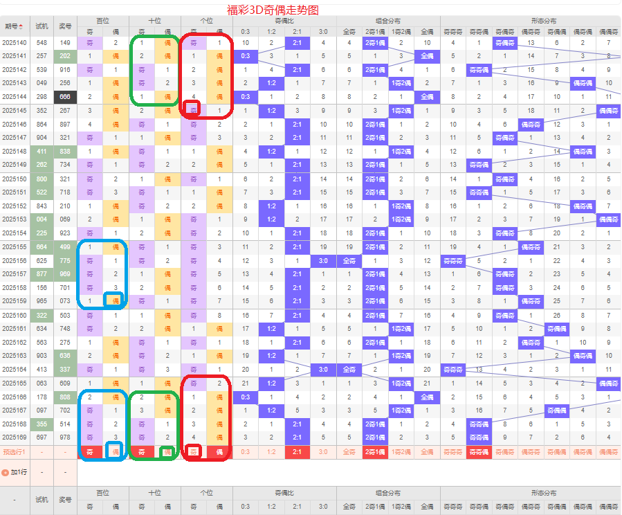 上期奇偶比是2:1,两奇的号码组合方式,从近五期的奇偶数出现情况看,奇数出现6次,偶数出现9次,奇数号码出现较少,本期侧重两奇的号码组合,侧重奇奇偶或偶奇偶的号码组合方式,根据奇偶形态做五码定位13579/13579/02468或/0246813579/02468